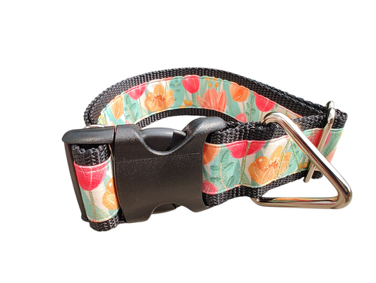 1.5" Wide Tulips Nylon Dog Collar