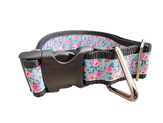 1.5" Wide Floral Blooms and Hearts Nylon Dog Collar