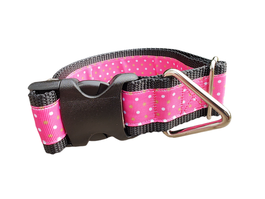 1.5" Wide Pink Polka Dots Nylon Dog Collar