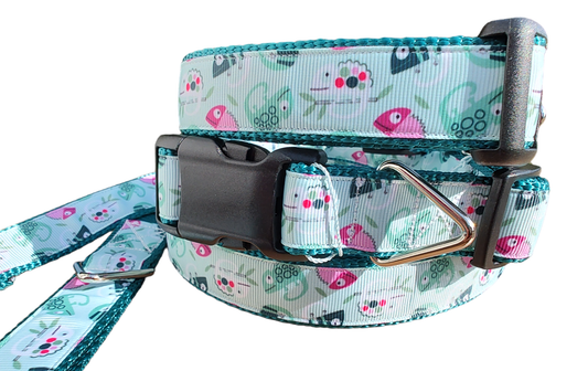 Branch Manager Light Blue Nylon Dog Collar MD, LG, XL, Leash, Martingale