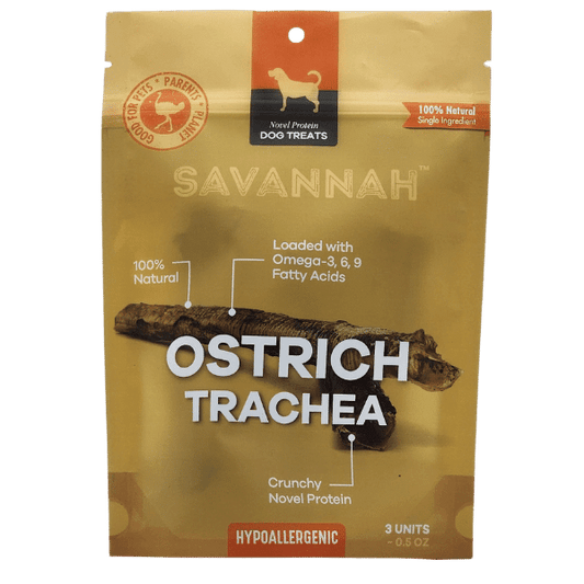 Crunchy Ostrich Trachea Whole. Light-weight, Natural Dog Chew Treat by Savannah Pet Food