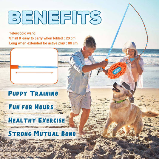 Wow Play - Dog Flirt Pole with American Football & Rope Tail Toys