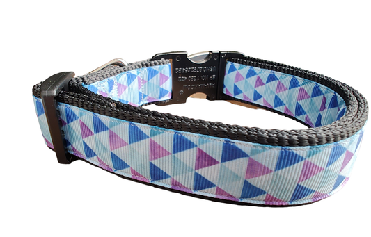 Purple Triangles Black Nylon Dog Collar MD, LG, XL, Leash
