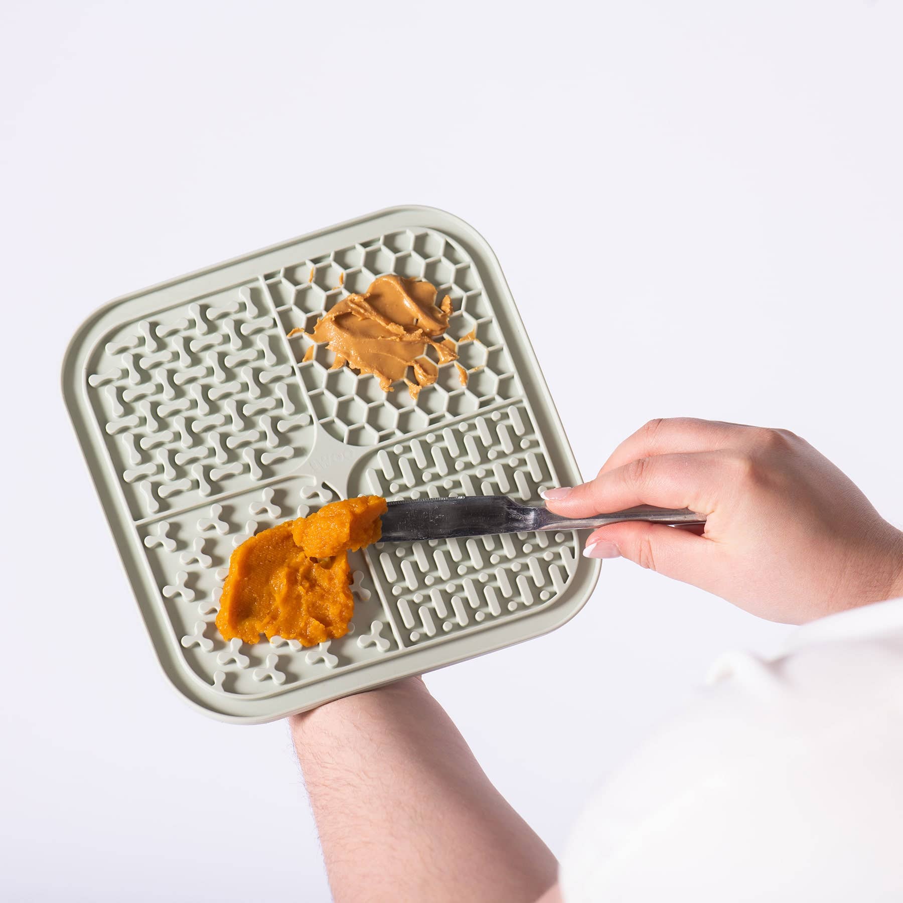 Simply SMOOSH, spread, or smear any soft dog-safe treats or foods onto the mat and serve! Or prep ahead of time and place in the freezer to be enjoyed later.