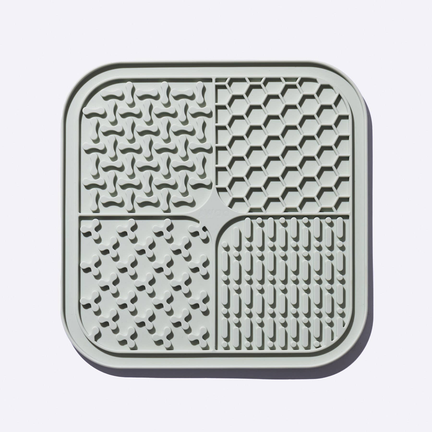 The ultimate food for thought. Non-slip lick mat with four separate textured sections designed to capture the tastiest spreads for longer-lasting engagement and mental stimulation. Use the lick mat as a training tool, to ease anxiety, build positive associations, and/or elongate mealtime.