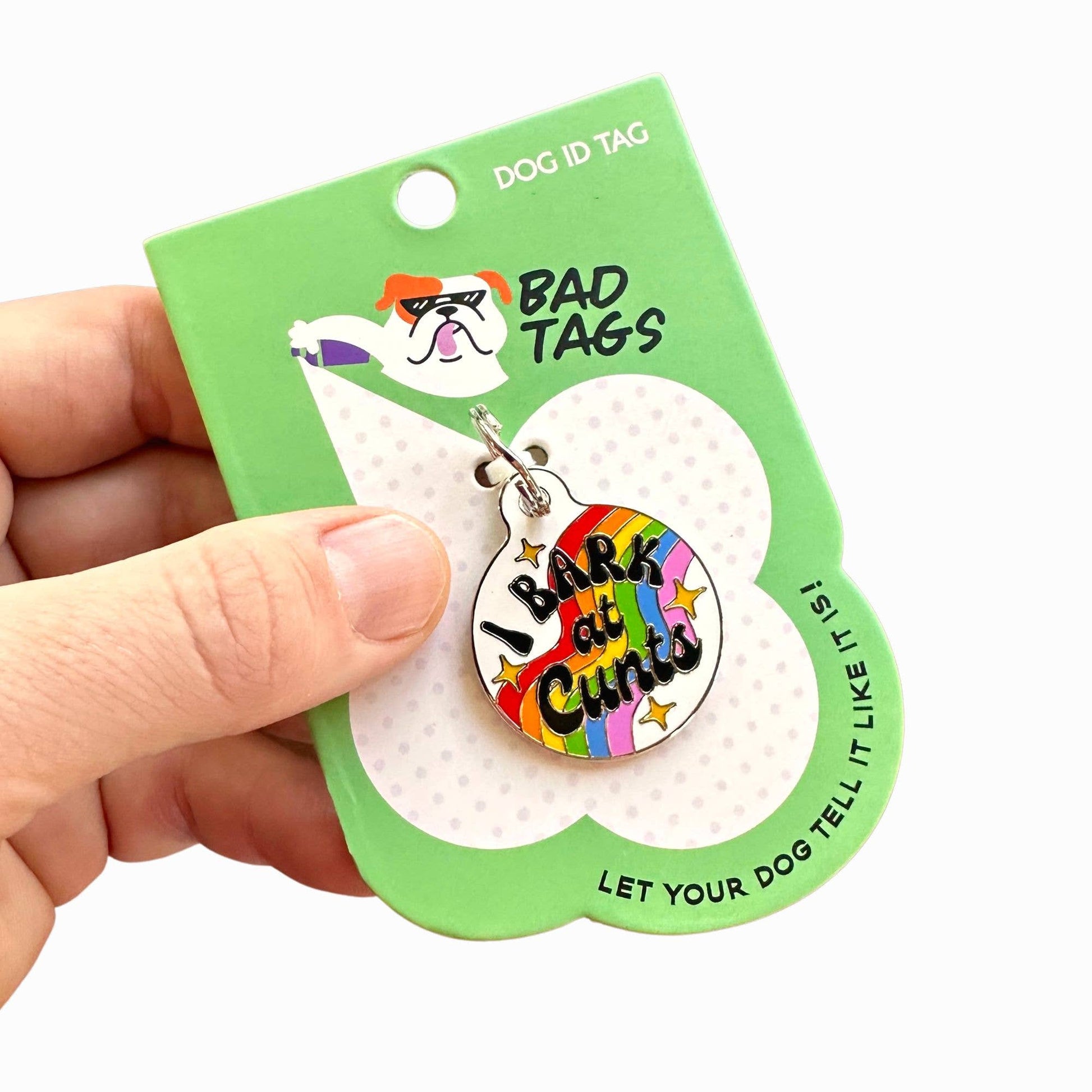 Bad Tags - Personalized Dog ID Tag Scannable QR Code - I Bark at Cunts - Large 1.25 / Engraved QR Code