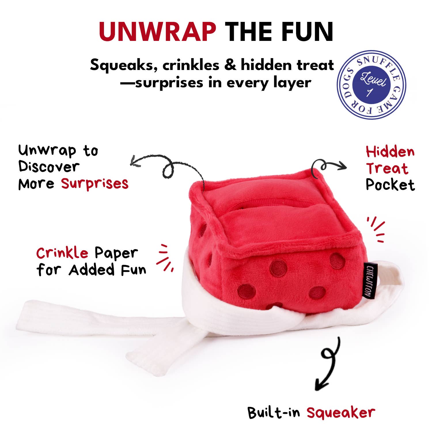 CHEWFFON - CHEWFFON Gift Box Dog Toy Crinkle, Squeak & Treat Puzzle