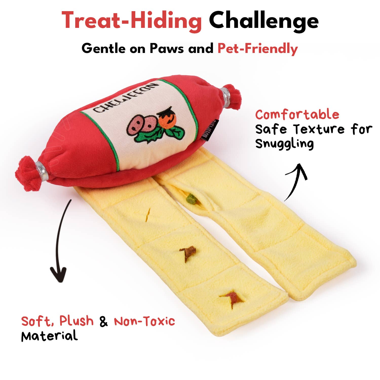 Part of CHEWFFON’s Level 2 snuffle collection, this sausage-shaped dog toy turns treat time into an engaging sniffing adventure. The realistic design sparks curiosity and satisfies your pup’s natural foraging instincts — a fun and thoughtful gift for any dog.