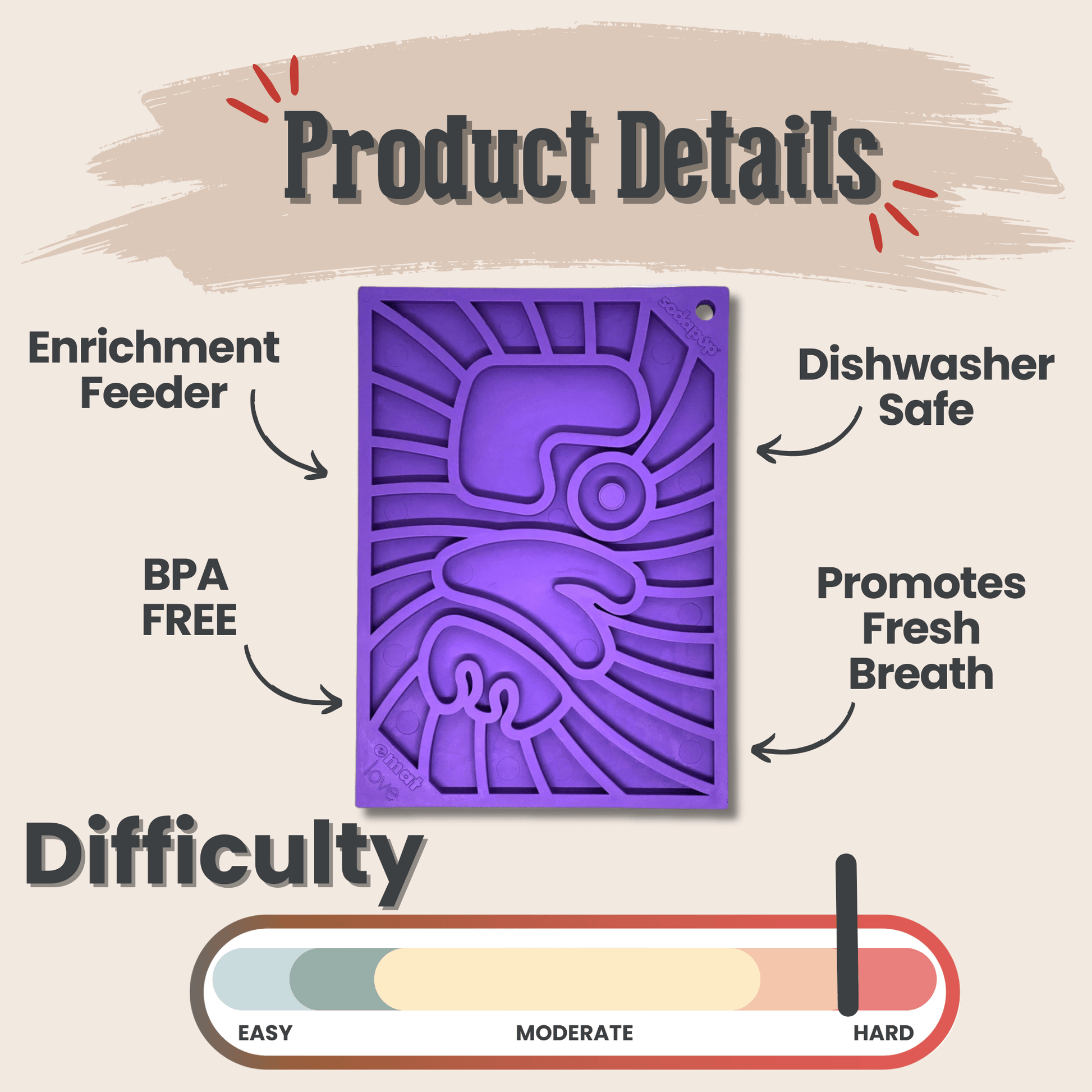 These rectangular Lick Mats by SodaPup are perfect enrichment toys for cats and small dogs for many reasons. Not only is the smaller size manageable for their stature, but the small grooves and lickable spaces make it perfect for their tongue size and agility to provide a perfect balance of challenge and reward. Of course, because these cat licking mats are pet safe, non toxic, dishwasher safe, and adorable, pet parents love them, too!