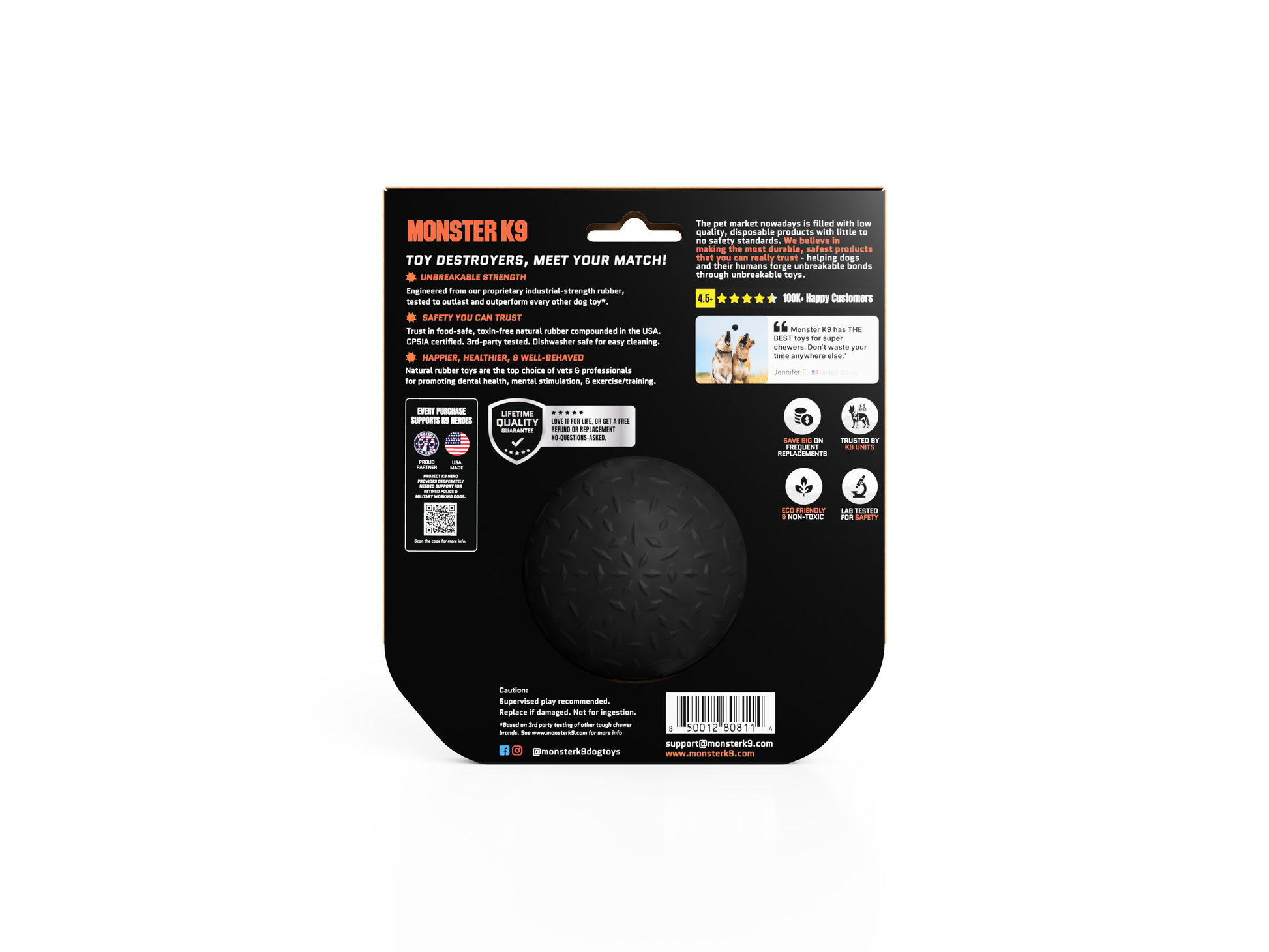 Monster K9 Dog Toys - Black Dog Ball for Aggressive Chewers