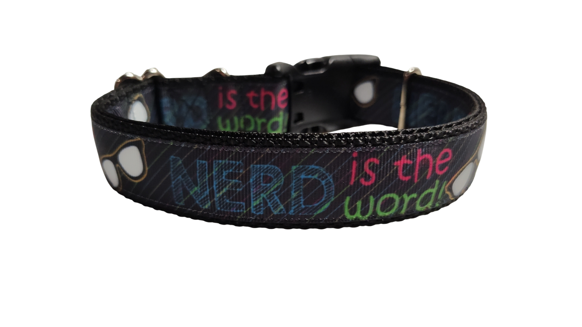 Nerd Is The Word dog collar on nylon webbing