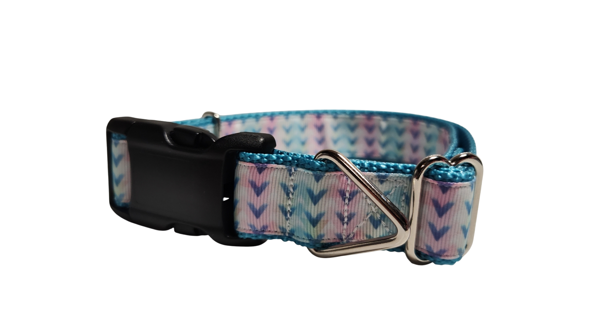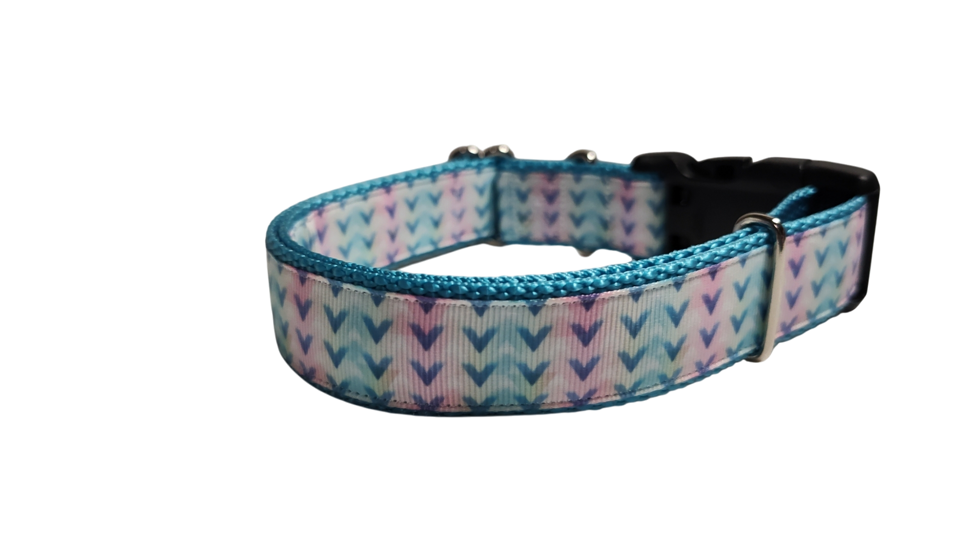 Pastel Tribal V Pattern dog collar on nylon webbing