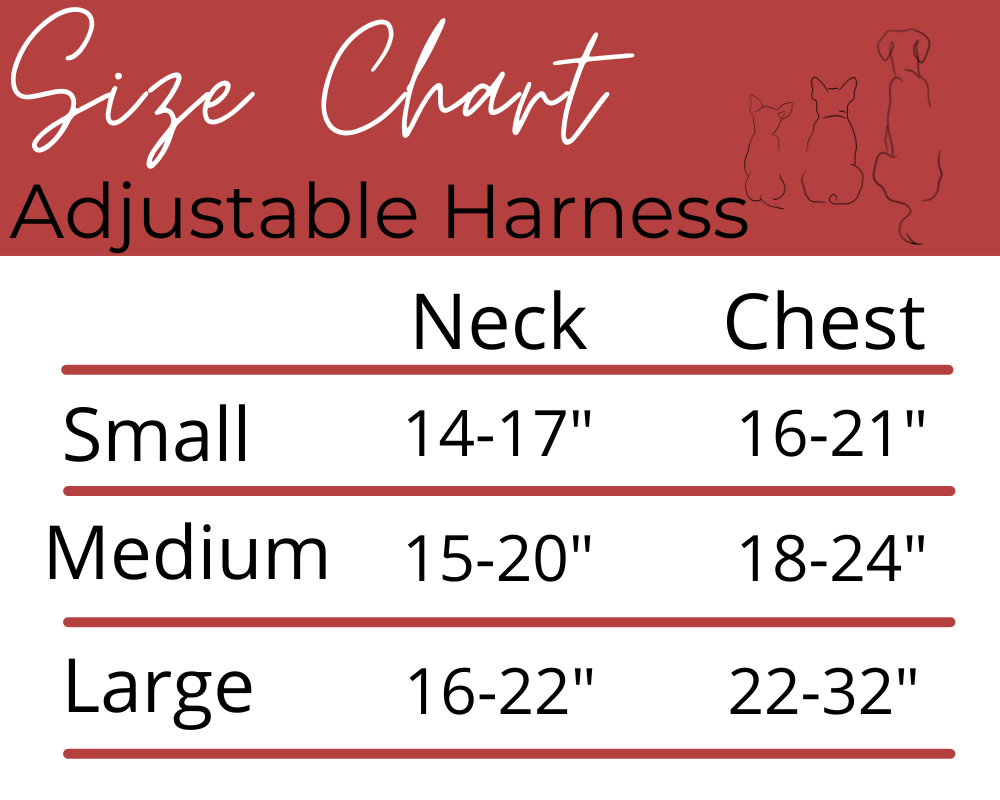 This Harness is made from a custom printed neoprene with breathable lining, along with a fully adjustable polyester webbing on the chest & neck.