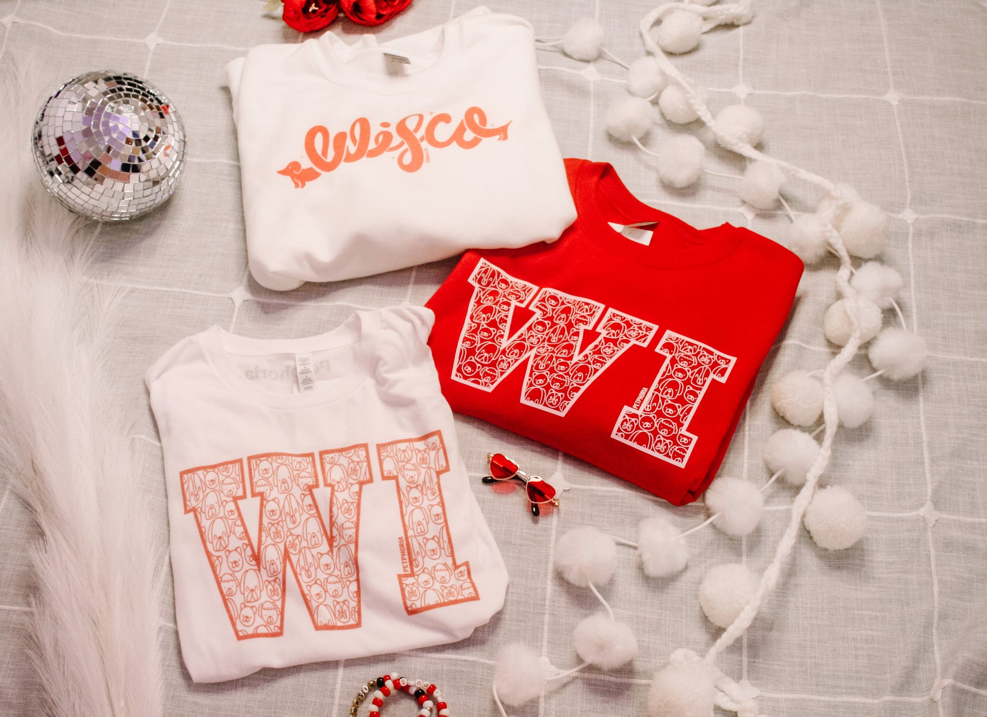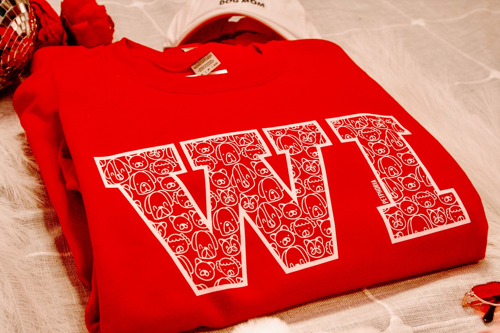 Two of our favorite things, Wisconsin and Dogs! Represent the great state of Wisconsin with this WI Dogs Crewneck. Wear it with pride! This design is also available in a white t shirt