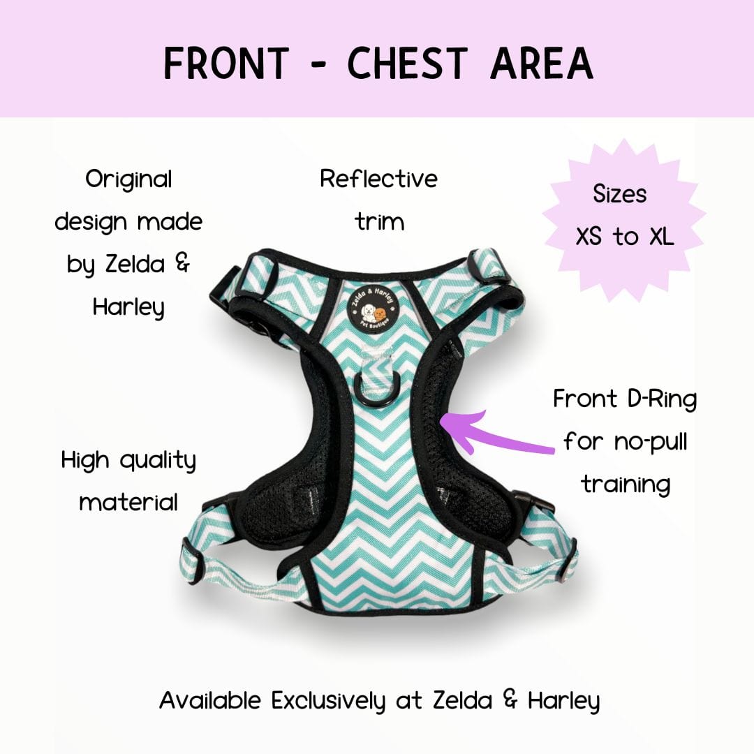 This Dog Harness Was Designed With En Trend Chevron Patterns & Pastels In Mind. It's Perfect For Any Season, And This Design Allows You To Customize Your Dog's Look And Style All Year Around!